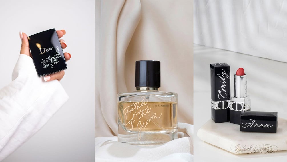 I love adding a touch of calligraphy to everything I do through hand engraving and painting. My style is modern, whimsical and fresh, with a touch of timeless elegance. What I love about my work is that I get to play with different scripts and surfaces, which doesn't limit my work to just paper. I work with pretty much any surface from glass, acrylic, wood, leaves, metal, ceramics and more.